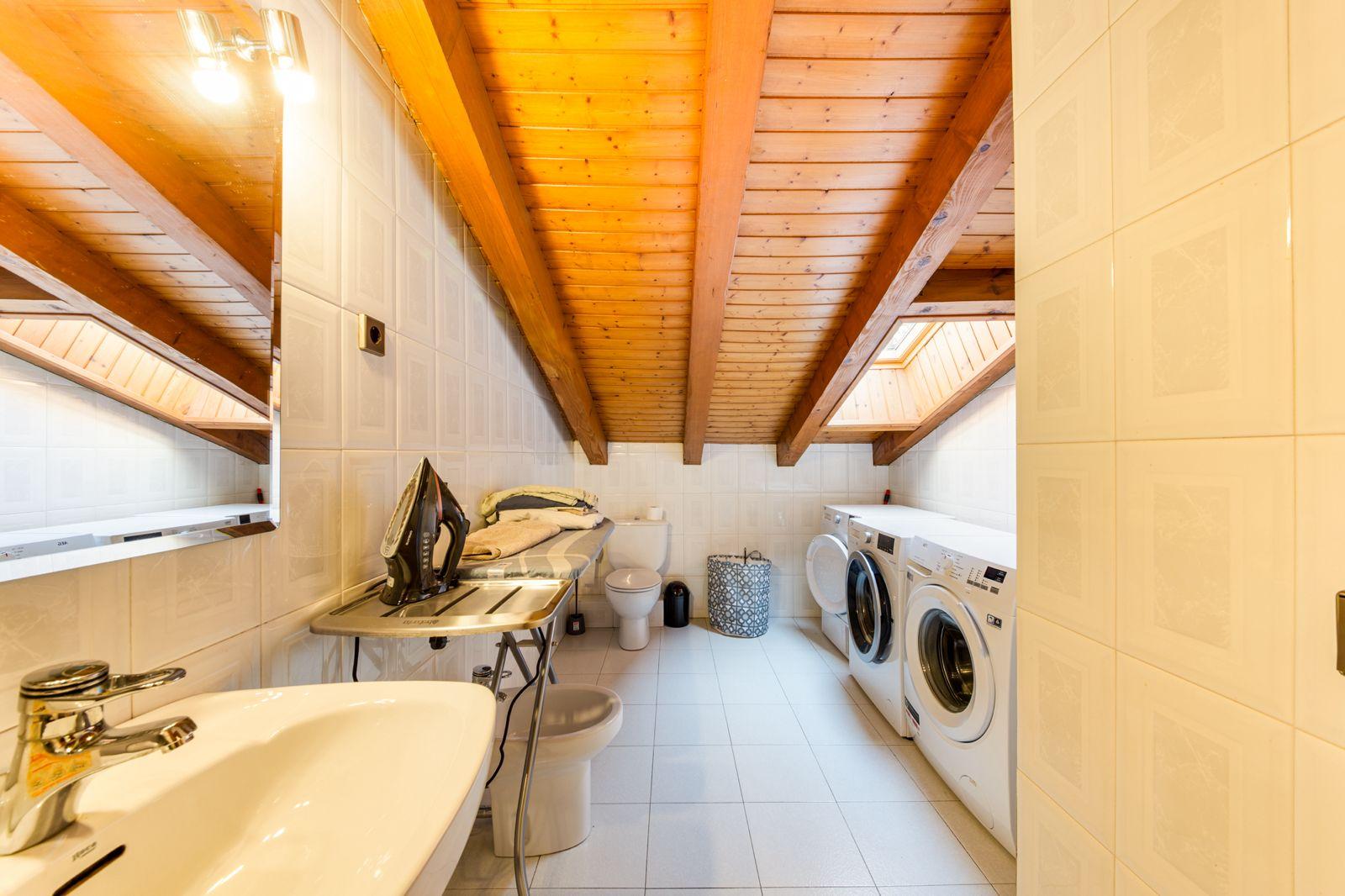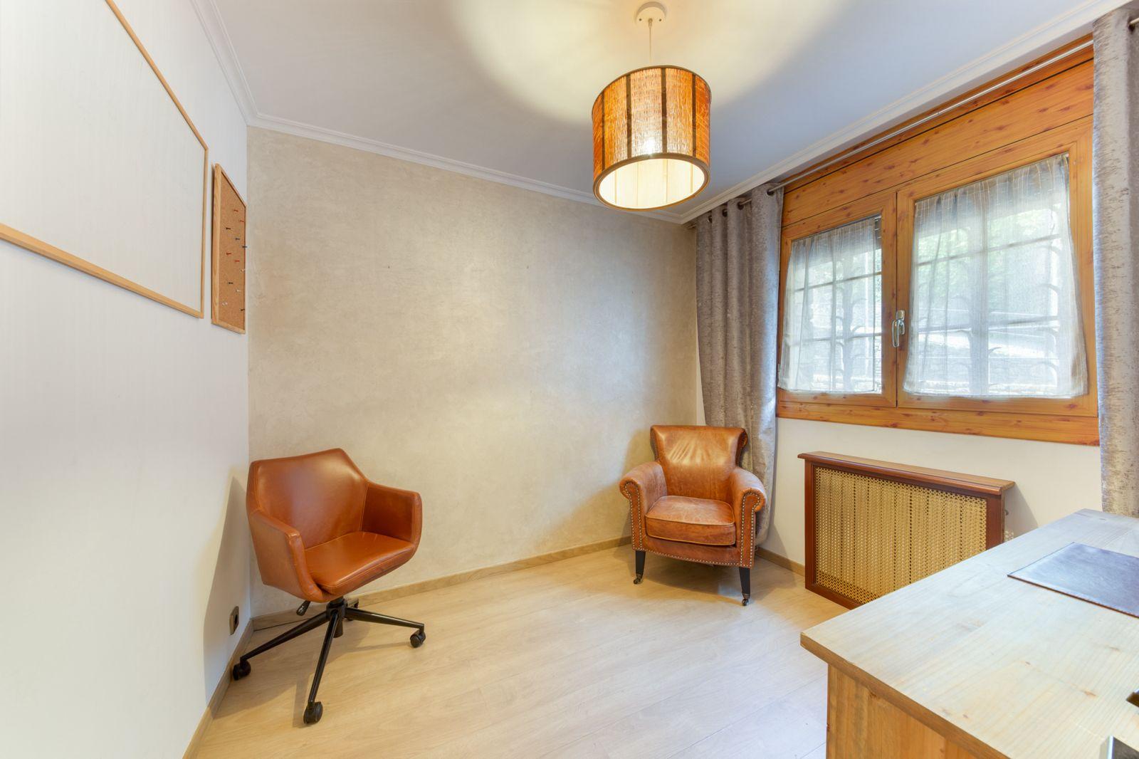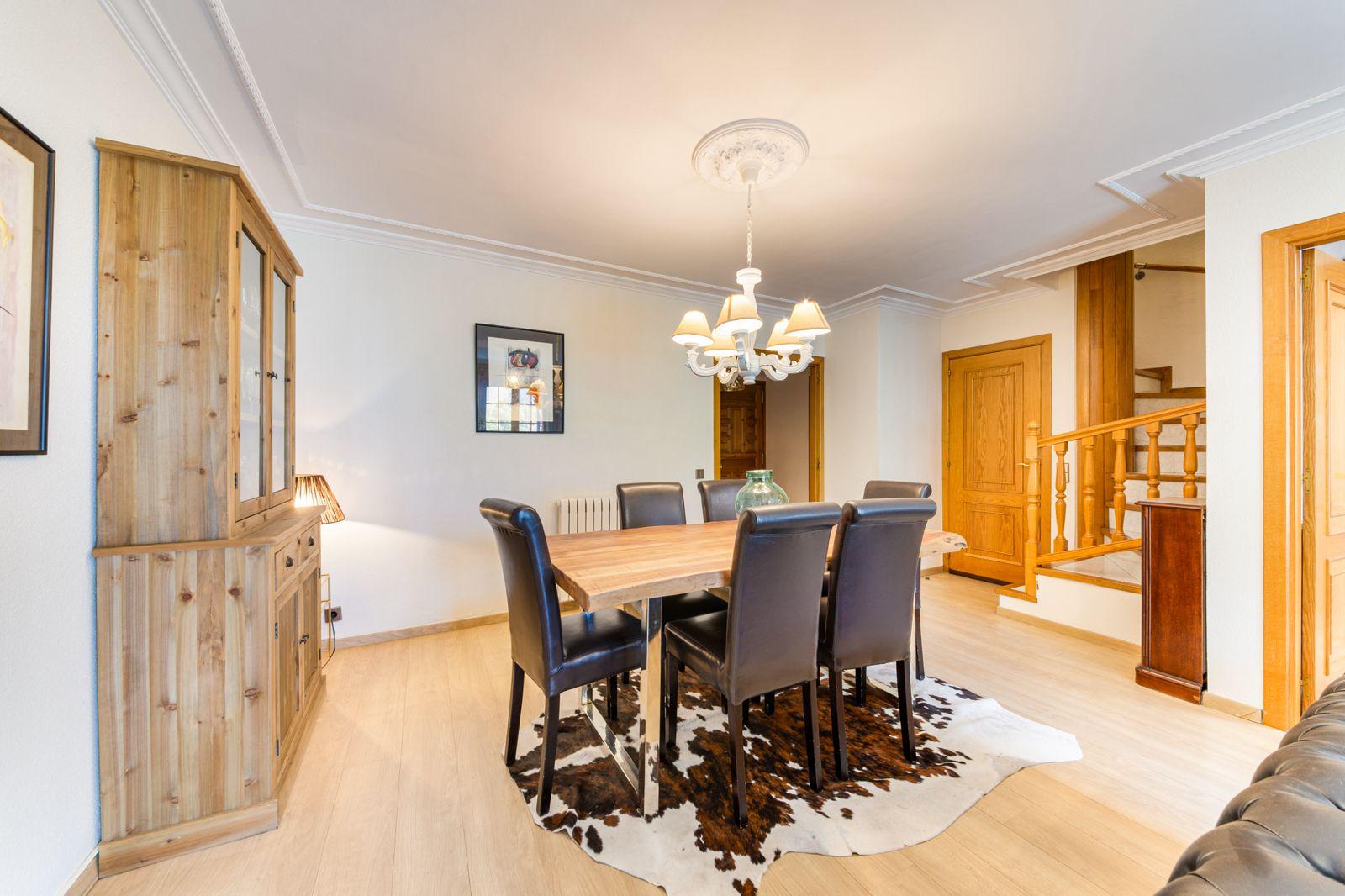 Disposa de garatge de 40m2 amb sala de caldera i ampli traster o sala polivalent, primeta planta amb gran saló amb llar de foc i sortida a terrassa, cuina independent, habitació habilitada com a despatx i ampli lavabo.